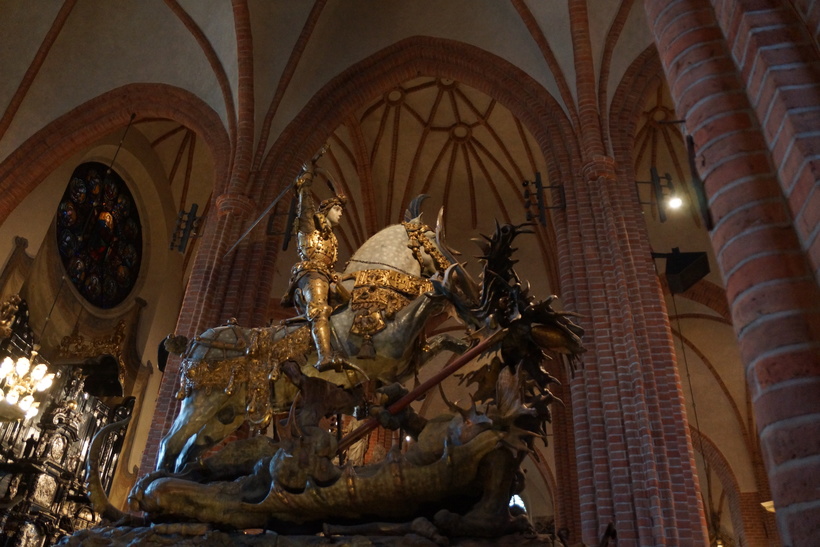 - Церковь Святого Николая — известная также как Великая. Это самая старая церковь в Гамла Стане. Она же моя любимая. Снаружи она выглядит куда проще и неказистее, чем остальные церкви Стокгольма, но попав внутрь, напрочь об этом забываешь. Церковь впервые упоминается в письменных источниках 1279 года и изначально была построена Ярлом Биргером, основателем самого города. Если вы ищите спокойствия и умиротворения, мне кажется, лучше места не найти. А находящуюся внутри статую святого Георгия и дракона я бы смело отнесла к тем достопримечательностям, на которые стоит посмотреть в Стокгольме.