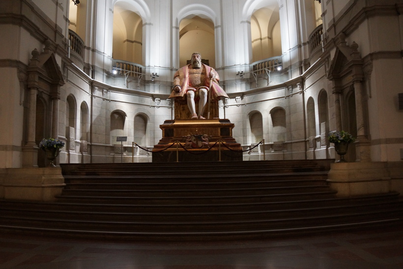 - Нордический музей (или музей северных стран). На входе в музей вы получаете небольшой плеер, который становится вашим личным экскурсоводом (есть на русском языке). Когда вы проходите мимо касс, первый, кто вас встречает, — Густав Васа. Огромная статуя, занимающая центральное место музея. В музее северных стран можно увидеть огромную коллекцию бытовых предметов, игрушек, одежды и мебели. А так же сценки, воссоздающие жизнь шведов в той или иной эпохе.