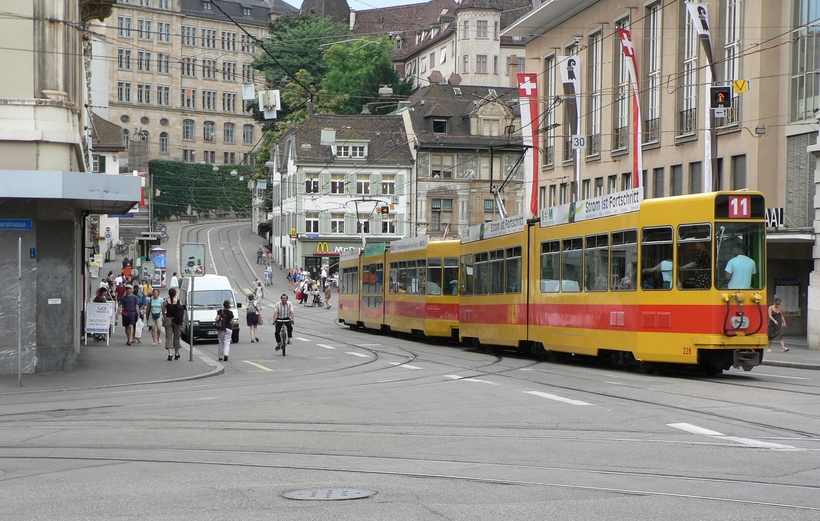 Передвижение по центру города, как и по окраинам, а также соседнему кантону Базель-Ланд и даже приграничному немецкому городу Валь-ам-Райн производится преимущественно посредством единой системы трамваев. Сама территория Базеля поделена на определенные зоны, в зависимости от которых колеблется и стоимость билета. За одну транспортную зону, которая включает в себя исключительно область внутри города, придется заплатить 2 EUR (2,2 CHF), воспользовавшись билетом на одну поездку. За первую же в совокупности со второй, в которую также входит большинство населенных пунктов Базель-Ланда —всего лишь 2,2 EUR (2,4 CHF).