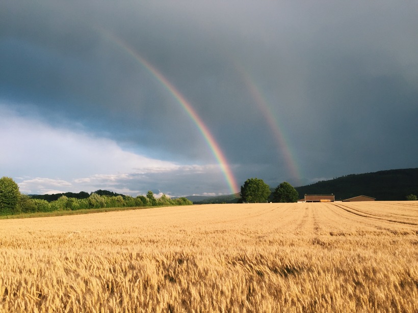 Дожди бывают, но чаще всего грибные, да какие... Не буду вдаваться в подробности: вы только посмотрите на эту потрясающую двойную радугу!!!