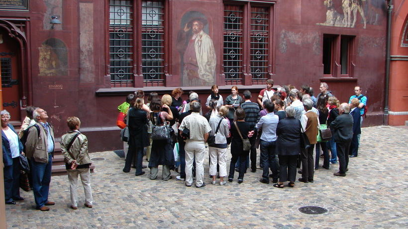 Честно говоря, не припомню, чтобы в Базеле была уйма туристов: групповые экскурсии туда организуют если только для немцев, да китайцев с японцами, хотя и их я вижу очень редко вне зависимости от сезона. Чаще всего это просто заезжие туристические группы, которые редко задерживаются в Базеле дольше чем на день. Базель скорее популярен среди семей с детьми и уже достаточно пожилых путешественников. Основную же массу бродящих по улицам города толп составляют местные, которые сами не прочь узнать побольше о своем любимом Базеле и полюбоваться его красотами.