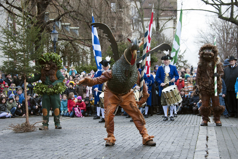 Представляет он собой не столько массовые гуляния, сколько длинную процессию из ряженых людей, который творят, что хотят. Здесь и шуты, и маленькие оркестрики местных общин, и простые зеваки. Рекомендую заранее запастись жетончиками Фастнахта соответствующего года: участники шествия любят подтрунивать над гостями. Если на вас на самом видном месте не окажется спасительный значок, вам в голову вполне может что-то прилететь, а то и вовсе —вытащат в самый центр шеренги и заставят вытворять, что им вздумается!