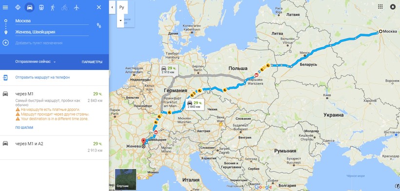 Например, Москва - Брест, Брест - Дрезден, Дрезден - Женева. Начиная от Варшавы, дорога пойдет по отличным автомагистралям. Особенно хорошо ехать по Германии, на автобанах которой можно развивать большую скорость. А вот в Швейцарии скоростной режим на автомагистралях до 120 км/ч, но зато можно любоваться прекрасными видами.