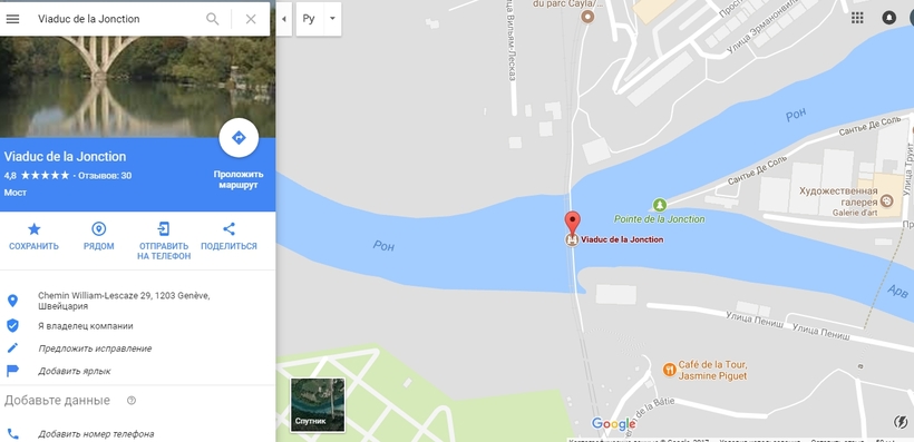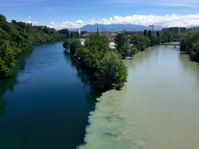Найти место слияния рек Роны и Арв. Наблюдать за необычным смешением синего и бурого потоков можно с моста Viaduc de la Jonction, который я отметила на карте.