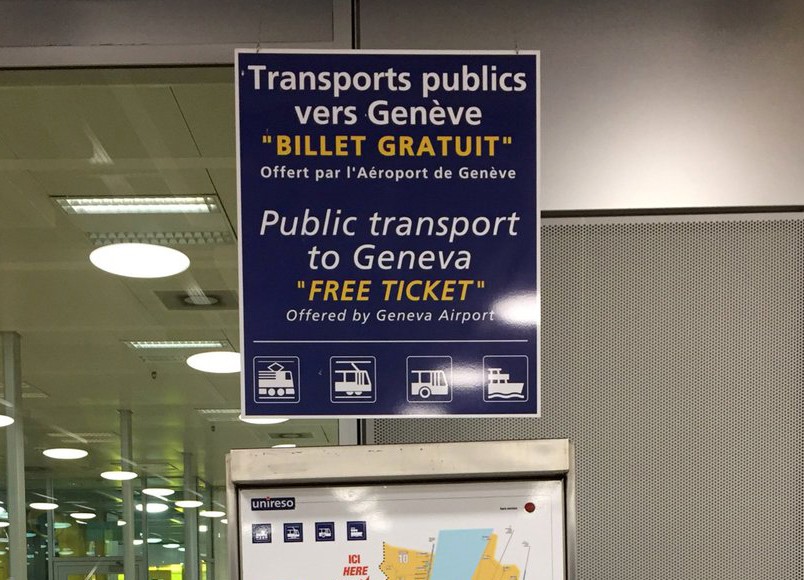 Женева – это один из немногих городов, предлагающих туристам возможность добраться из аэропорта совершенно бесплатно. В зоне выдачи багажа находится автомат, в котором вы сможете получить бесплатный билет на общественный транспорт, действующий в течение 80 минут.