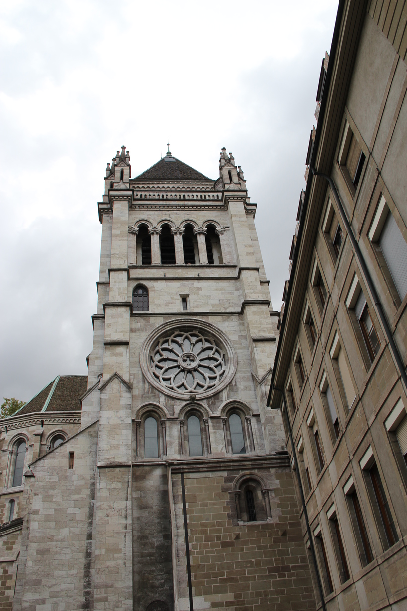 Женевский собор Святого Петра (Cathédrale Saint-Pierre). Он был заложен в 12 веке на месте раннехристианских построек, в последующие годы активно дополнялся архитектурными деталями. В 16 веке собор стал протестантским, и его интерьер приобрел характерную сдержанность и строгость. Храм знаменит стулом, с которого читал свои проповеди Жан Кальвин. А мне больше всего запомнился великолепный вид на озеро, который открывается со смотровой площадки на колокольне (4,5 EUR/5 CHF, детский билет 1.8 EUR/2 CHF). Туда ведет 157 ступенек, но поверьте, вид того стоит. Под собором находятся археологические раскопки (7.3 EUR/8 CHF), посетив которые, вы увидите остатки древней базилики 4 века. Режим работы собора: c 1 июня по 30 сентября с 9.30 до 18.30 (воскресенье с 12.00 до 18.30); в остальное время года с 10.00 до 17.30 (воскресенье с 12.00 до 17.30).