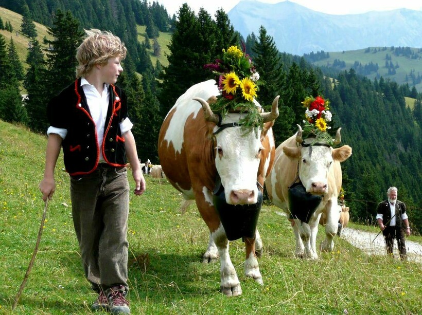 Благосостояние средневековой Швейцарии было основано на альпийском скотоводстве. Почитание и любовь к корове стали общенациональной традицией. Во всех кантонах Швейцарии сохранился народный обычай украшать коров, возвращающихся с летних пастбищ, цветами и венками. Это возвращение в каждом горном селе в начале сентября превращается в местный праздник.