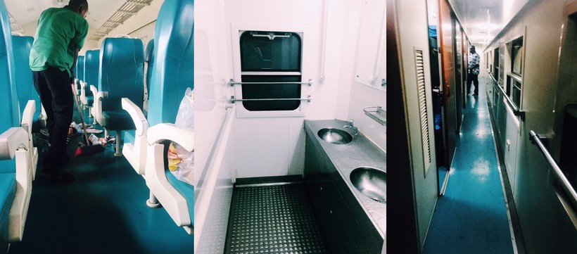 В некоторых туалетах первого класса есть даже лейки для душа, но больше всего нам понравились небольшие ванные комнатки посередине каждого вагона, в которых можно спокойно умыться или посмотреть в зеркало, не дожидаясь, пока освободится туалет.