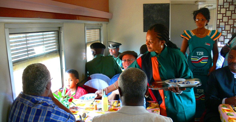 Еда в ресторане была дешёвой: неважно, ужин, завтрак или обед — любое блюдо стоило 2 USD. Рис на гарнир и говядина или курица на выбор — все было вкусным, хоть и не очень сытным. Воду (1 USD за 1,5 литра) и пиво продавали по уличным ценам , а не за пол-состояния, как в наших вагонах-ресторанах. Расплачиваться в поезде можно только наличными, причем первые сутки — танзанийскими шиллингами, а вторые, после границы — замбийскими квачами. Поменять деньги можно прямо в поезде по нормальному курсу.