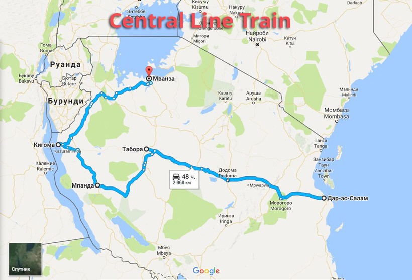 Центральная линия, Дар-эс-Салам — Мванза, проходит через Кигому, Табору и Мпанду.