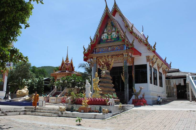 Недалеко от пляжа Tawaen имеется обзорная площадка, здесь можно сделать потрясающие фото, виды открываются просто головокружительные. Острова в Тае гористые, вот и на Ко Лане имеется холм, на самой высокой его точке расположен храм Будды с огромной статуей этого божества.