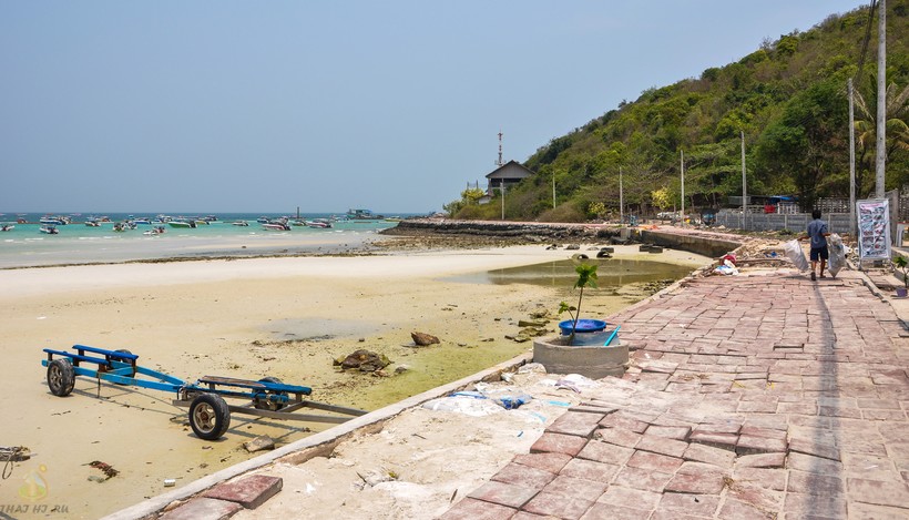 Примечателен же пляж мелким и белым песком, а вот вода не отличается особенной чистотой, но и не такая, как в Паттайе, это факт. Хотя наличие бытового мусора у берега, безусловно, очень смущает.