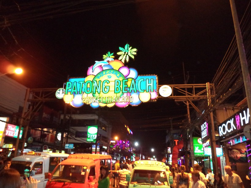 Пожалуй, пхукетская Бангла роуд (Bangla road) известна не меньше, чем паттайская Волкинг стрит (Walking street) или бангкокская Каосан роуд (Khaosan road), но сейчас я расскажу вам именно про Банглу. Располагается улица клубов на самом туристическом пляже Патонг, в непосредственной близости от центрального входа на пляж и патонгского отделения полиции.