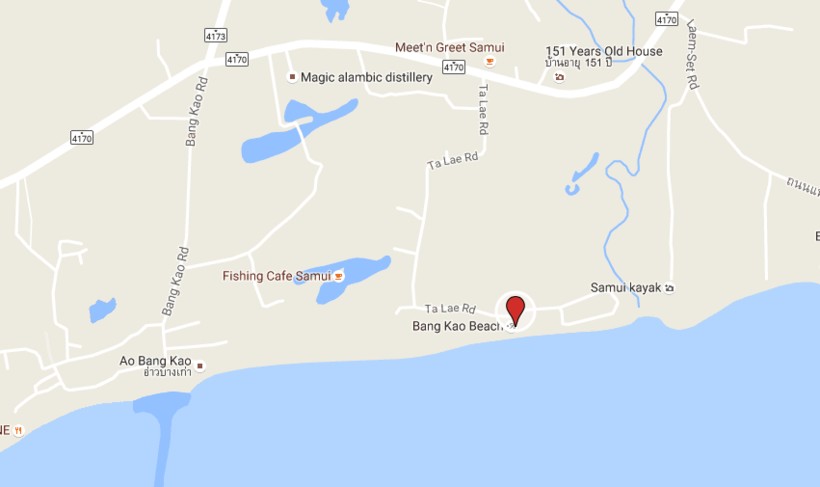 Пляж Банг Рак находится чуть ли не напротив аэропорта. Тук-тук курсирующий по кольцевой дороге сюда не заезжает. Как вариант: можно доехать до пляжа Бопут и оттуда прогуляться пешком. Либо на такси или личном транспорте доехать до места, отмеченного на карте.