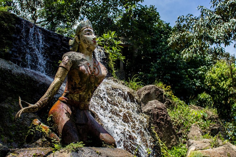 Этот водопад очень хорош. Вода спадает с нескольких ярусов, вокруг яркие влажные джунгли и очень много живности. Я была там в сезон дождей, и водопад был бурным с грязной коричневой водой. После окончания ливней вода прочищается и становится прозрачной. По левой стороне вдоль водопада идет лестница наверх. Так что можно полюбоваться им и снизу, и сбоку, и сверху.