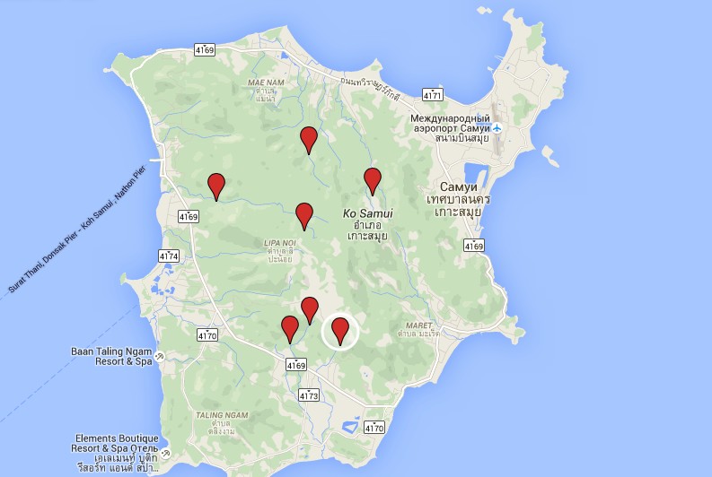 ВОДОПАДЫ НА КАРТЕ САМУИ