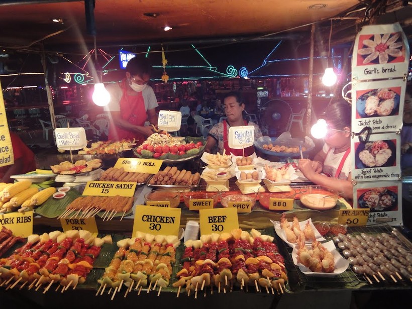 Что касается вечерних рынков, то они открываются только вечером, с наступлением темноты. Здесь, как правило, продаются готовые блюда. Цены могут быть разные – от 1.13 доллара (40 батов) и выше. Готовят на гриле целые рыбины по 4.24-5.2 доллара (150-200 батов) за штуку. Продаются и разные плюшечки-булочки по 0.4-0.5 доллара (10-15-20 батов) за штуку, и вкусная вареная кукуруза по 0.4 доллара (15 батов) за штуку, и маленькие шашлычки по разным ценам – от 10 батов в зависимости от размера.