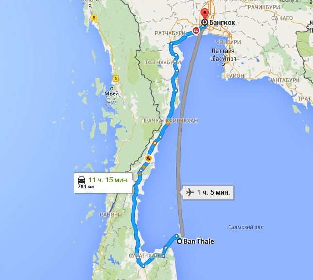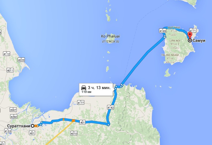Остров Самуи находится в 600 км по прямой на юг от Бангкока. Путь по дорогам составляет 784 километра.