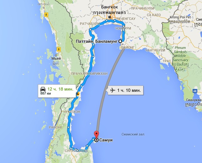 Расстояние по земле между Паттайей и Самуи 917 километров.