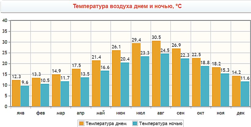Климат на Керкире средиземноморский. Путешествие на Корфу стоит планировать в период с июня по сентябрь, когда средняя температура воздуха днем не опускается ниже 26–30 °С, а море прогревается до 23–26 °С. В июне–сентябре из российской столицы и региональных городов летают прямые чартеры на Корфу.