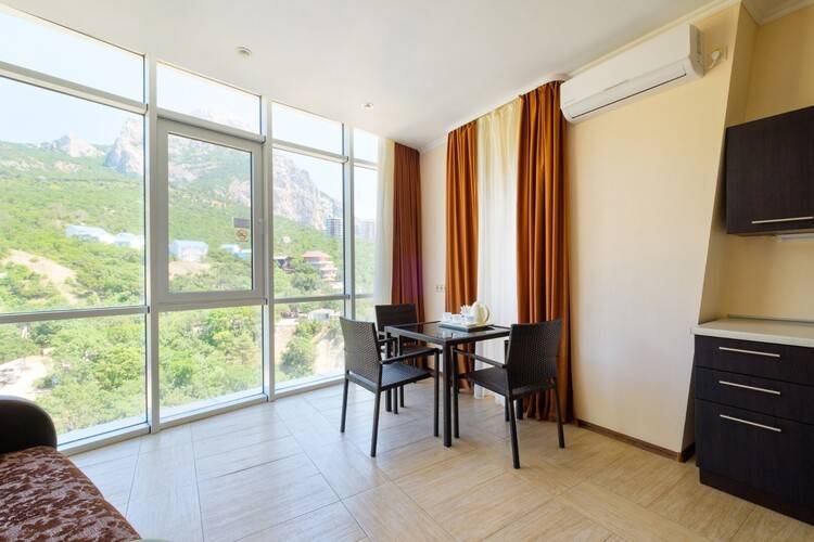 Гостиничный Комплексрасположен в одном из самых красивых и теплых мест крымского побережья -в уютной живописной бухте Ласпи у подножья горы Ильяс Кая, вдали от городской суеты, в самой южной точке полуострова между Ялтой и Севастополем, в окружении реликтовых деревьев и величественных горных вершин. Местоположение Комплекса и его инфраструктура предполагают спокойный и комфортный отдых на лоне нетронутой природы. В распоряжении гостей собственная закрытая двухуровневая набережная с прогулочной палубой и выходом к морю, пляжная зона, оборудованная шезлонгами, зонтами и теневыми навесами. Общая инфраструктура Гостиничного Комплекса включает в себя также небольшой ухоженный парк с зонами отдыха и пешими маршрутами через реликтовую дубово-можжевеловую рощу.