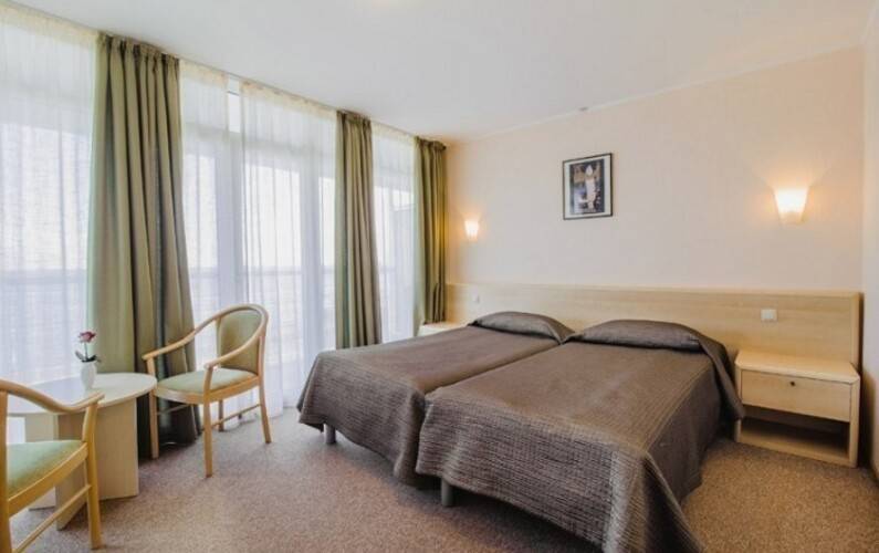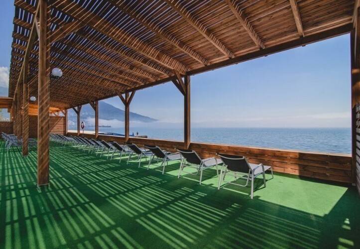 - Пляж: собственный мелкогалечный пляж, расположенный в 30 м от отеля (1 линия). На пляже есть комфортабельные шезлонги, теневой навес и зонты, а также на пляже присутствуют спасатели.
