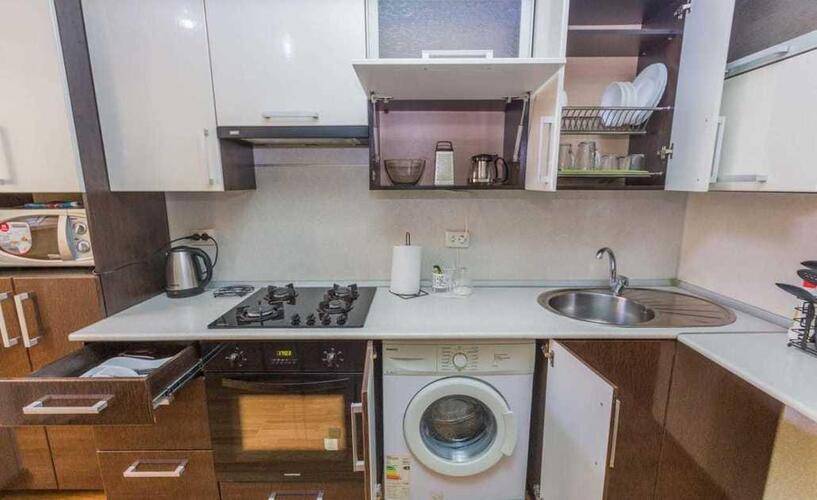 Современные апартаменты в жилом районе с удобной планировкой и полноценным оснащением. Подходят для семейного размещения или деловой поездки.