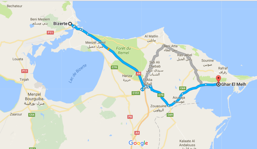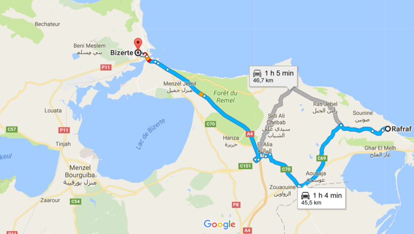 Потребуется всего час, чтобы доехать на машине до Бизерты. На бензин вы потратите около 10 EUR.