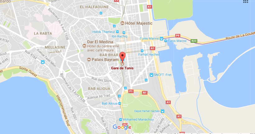 Вокзал в городе Тунис находится на Avenue de la Gare, напротив посольства Италии. Он так и называется — Gare de Tunis.
