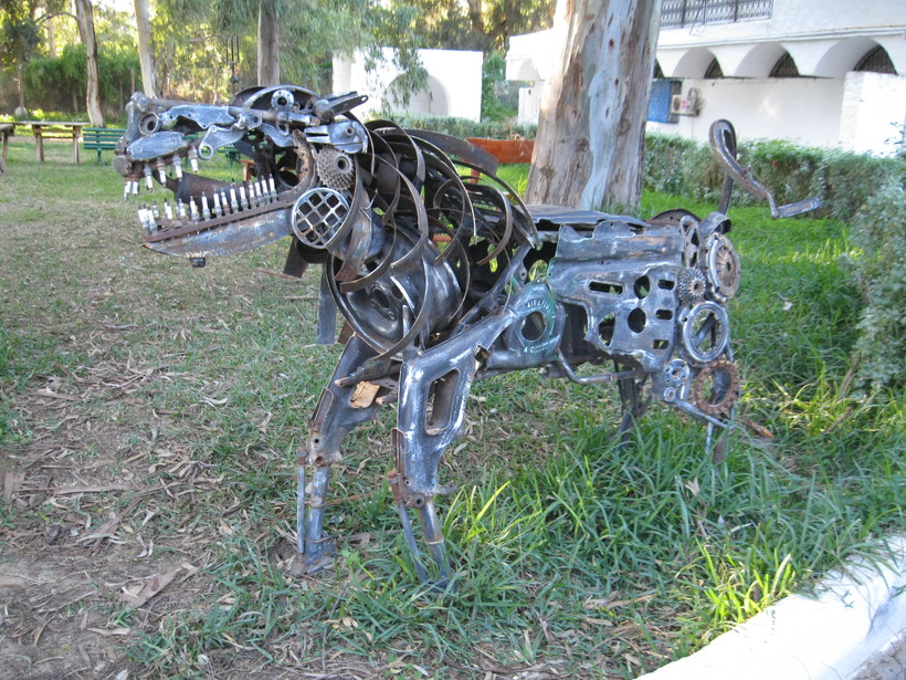 Рядом с ним установлены различные скульптуры роботов и животных из старых деталей машин и прочей техники.