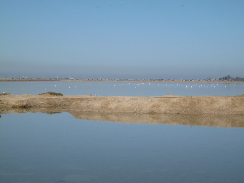 Мы часто ездили мимо водоемов в Сусс и заметили, что окружающий пейзаж очень красиво отражается в озерах, так что создается иллюзия двойственности пространства. Они разделены между собой земляными насыпями, но выходить туда запрещено. Проход загражден железной проволокой.