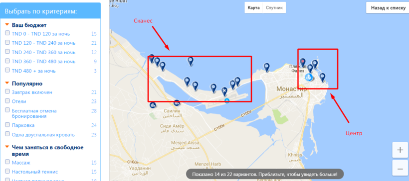 До центра из Сканеса нужно брать такси, это минут 15. Да и в самом Монастире не так много развлечений, поэтому многие туристы предпочитают ехать отдыхать в Сусс.
