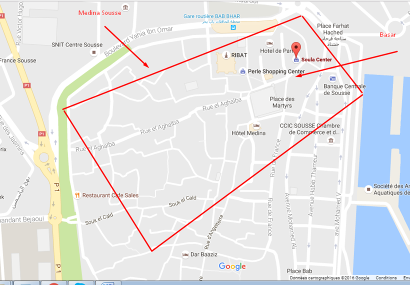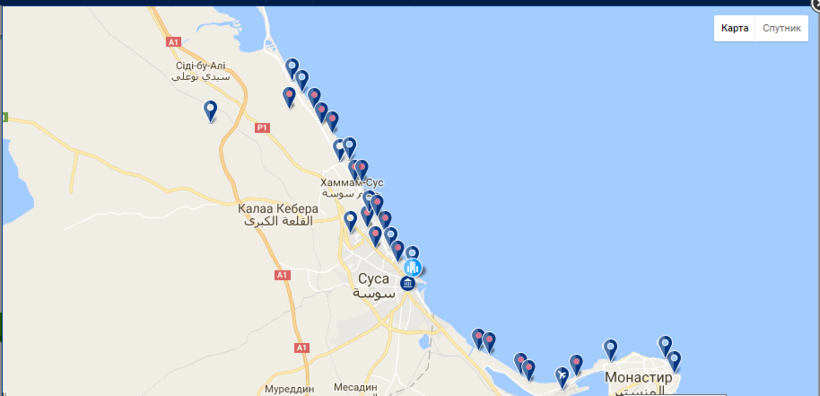 В центре Сусса мало приличных отелей, зато там в шаговой доступности все магазины, рестораны, кафе и историческая часть города.
