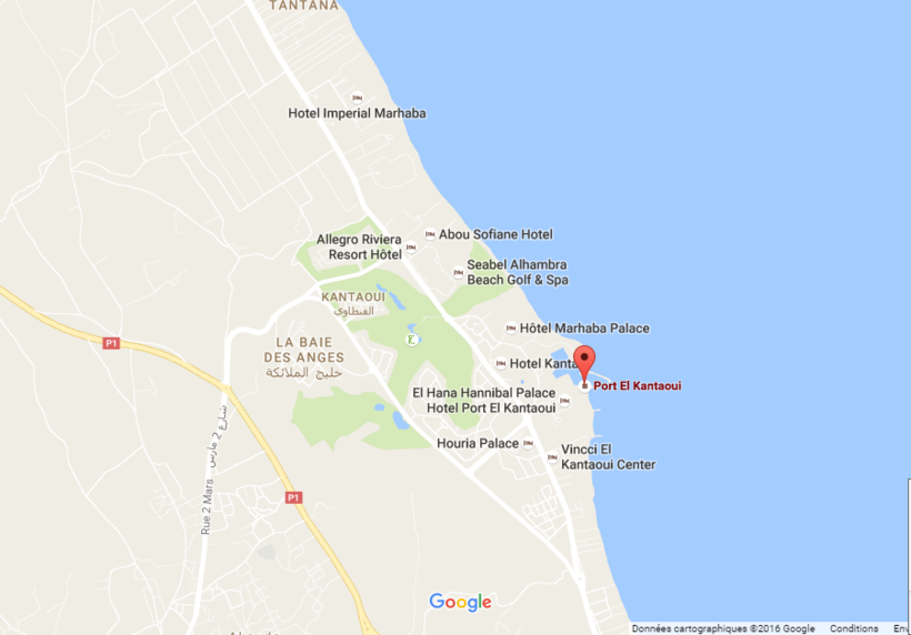 Туристическая зона, как это и водится в таких курортах, вынесена за городскую черту — почти 20–25 минут езды на машине. Называется этот район Port El-Kantaoui.