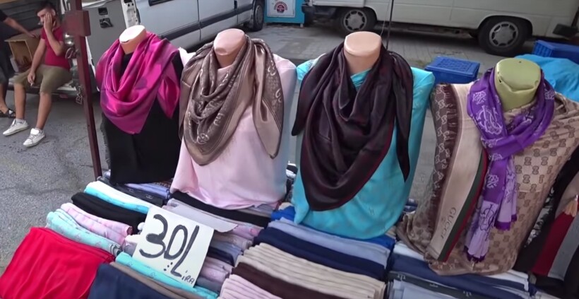 - шарфы и платки — от 5 ₺ до 50 ₺ (41–410 ₽);
