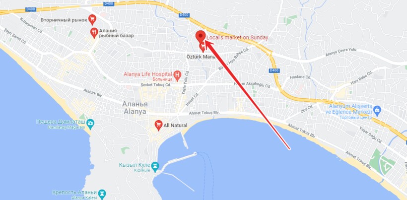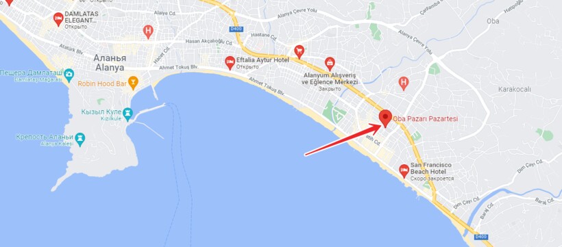 Где найти? Район Оба, улица 30 Sokak, перед супермаркетом Metro. Открыт базар с 08:00 и до 21:00.