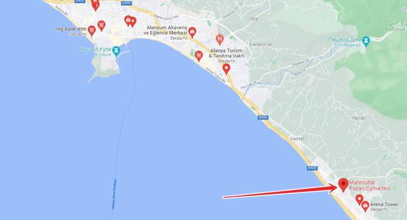 Где найти? В центральной части города, за магазином LC Waikiki, и в районе Каргыджак. Работает с 08:00 до 21:00 в летнее время, зимой — с 08:00 до наступления темноты. Добраться до базара можно на общественном транспорте, который идет до Cuma Pazari. Из таких районов Аланьи как Махмутлар, Кестель или Конаклы, вы можете добраться на любом долмуше.