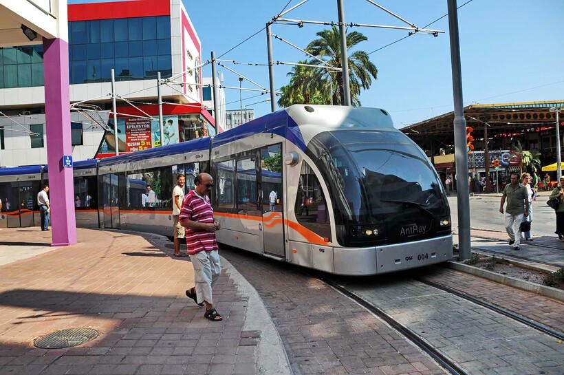 Еще одним видом общественного транспорта, курсирующим в/с центра города, являются трамваи AntRay, на которых добраться можно всего за 20 минут. Нужно выбирать линию Т1А. Остановка находится рядом с терминалами, найти ее можно по указателям. Курсируют трамваи с 7 утра до 11 вечера с интервалом в 20–30 минут. Стоимость билета — около 3 турецких лир (25 рублей).