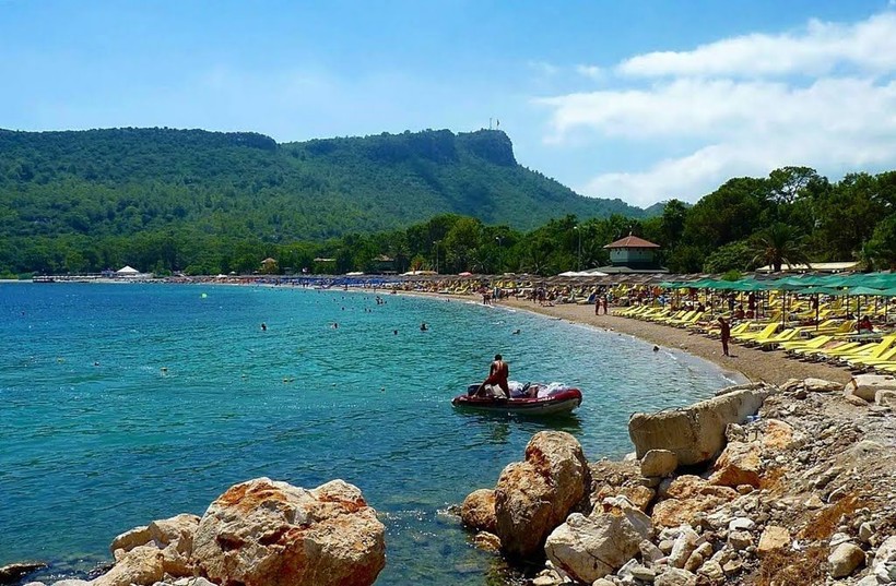 - Дикий пляж №1. Около въезда со стороны Антальи в Бельдиби есть популярный у туристов дикий пляж Попасть на него можно, пройдя по воде возле камней. Глубина там не очень большая, но вещи придется поднимать над головой, чтобы не замочить их. Второй путь до пляжа проходит по суше. Нужно дойти до заброшенного тоннеля, а после него повернуть в сторону моря. Тропинка проходит через скалы, поэтому следует соблюдать осторожность. Пляж со всех сторон окружен высокими камнями, некоторые из них находятся прямо в море. Самые бесстрашные туристы используют их в качестве вышки для прыжков. Недостаток этого места в том, что полностью отсутствуют удобства в виде туалетов и душевых, зато здесь всегда малолюдно.