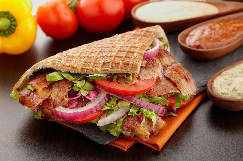 - Денер-кебаб. В Турции под названием «кебаб» подразумевается блюдо из мяса. Денер-кебаб — это известная всем шаурма. Ее здесь готовят из баранины, но в Бельдиби я пробовала из курицы. Кроме мяса в лепешку завернуты овощи, сдобренные вкусным соусом.