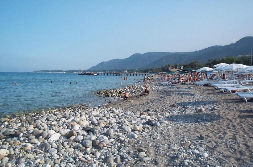 - Общественный пляж. Если не устраивает место для купания от отеля, то можно ходить на городской пляж Бельдиби, который расположен возле парка с тренажерами. Вход туда бесплатный. Единственное, что придется покупать – шезлонг за 4 TRY. Загорать на крупной гальке на полотенце очень неудобно. Зона для купания снабжена переодевалками и туалетами. Здесь расположены бесплатные душевые для смывания соленой морской воды. Если захочется перекусить, можно сделать это в небольших закусочных рядом с пляжем.
