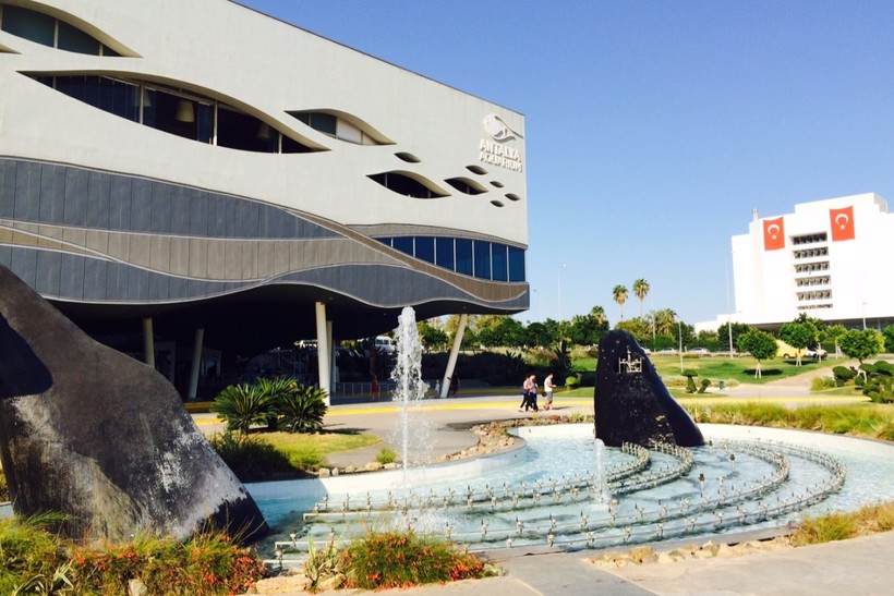 - В анталийский Океанариум. Он находится напротив Дельфинария и на одной стороне с Мини Сити. В этом же здании можно посетить ледяную пещеру, но нам больше захотелось посмотреть на тропических рыбок. Правда, стоимость билетов нас так разочаровала — за взрослого и ребенка с 12 лет по 40 USD, дети с 3 лет по 20 USD. За экскурсию по подводному миру нам пришлось бы отдать 160 USD, потому что старшему сыну было уже 15 лет. Контролеры, стоявшие на входе, заметили наши раздумья и пропустили внутрь, взяв всего 100 USD.