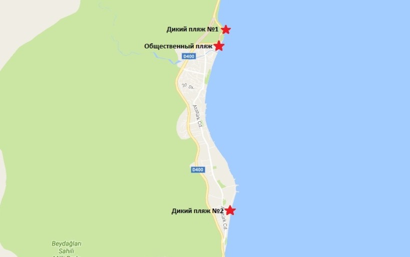 - Дикий пляж №2. Возле другого въезда, если ехать из Кемера в Бельдиби расположен еще один дикий пляж, на который пускают всех без исключения. Здесь более пологое место, избавленное от громоздких камней. Однако его отличает не очень удобный заход в море, поэтому детям на этом пляже будет неудобно купаться. Места для личной гигиены и перекуса тут тоже отсутствуют.
