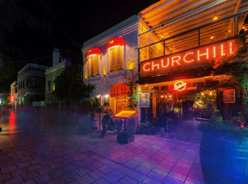 Churchill — это кафе-ресторан в центре Бодрума на побережье моря, выполненный в стиле английских пабов. Ресторан находится по адресу Carsi Mahallesi, Cumhuriyet Caddesi No: 112 и работает с 8:30 до 03:30.