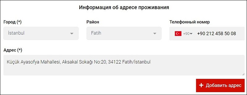 - Укажите город Турции, в котором будете проживать (выбирается из выпадающего списка).