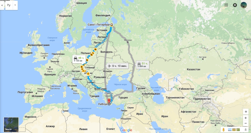 Автомобилем добраться в Фетхие из Санкт-Петербурга можно через: