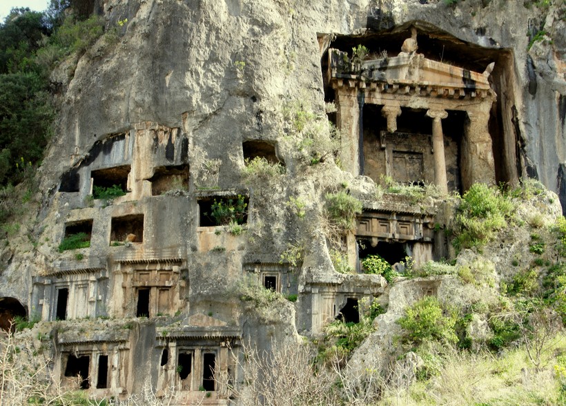 - Ликийские гробницы (Дальян, 45 км от Фетхие) – уникальная историческая достопримечательность, скальные гробницы великих императоров. Лучше всего посетить данное место с помощью лодочной экскурсии из Фетхие, стоимость – от 20 USD на человека. В сами Ликийские гробницы попасть не получится – давным-давно они были разграблены, а сейчас вход в них возможен лишь для археологов. Тем не менее, в формат экскурсии также входит прогулка по реке Дальян.