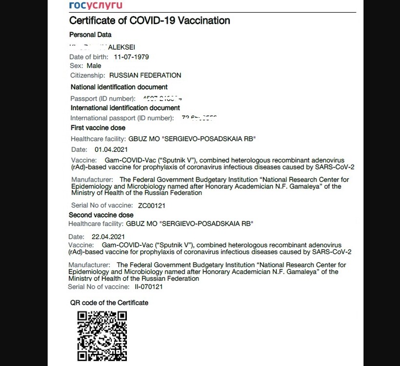 - в документе должны быть указаны личные данные вакцинированного лица (в том числе номер загранпаспорта), название вакцины и номер партии, производитель препарата и данные о его регистрации;