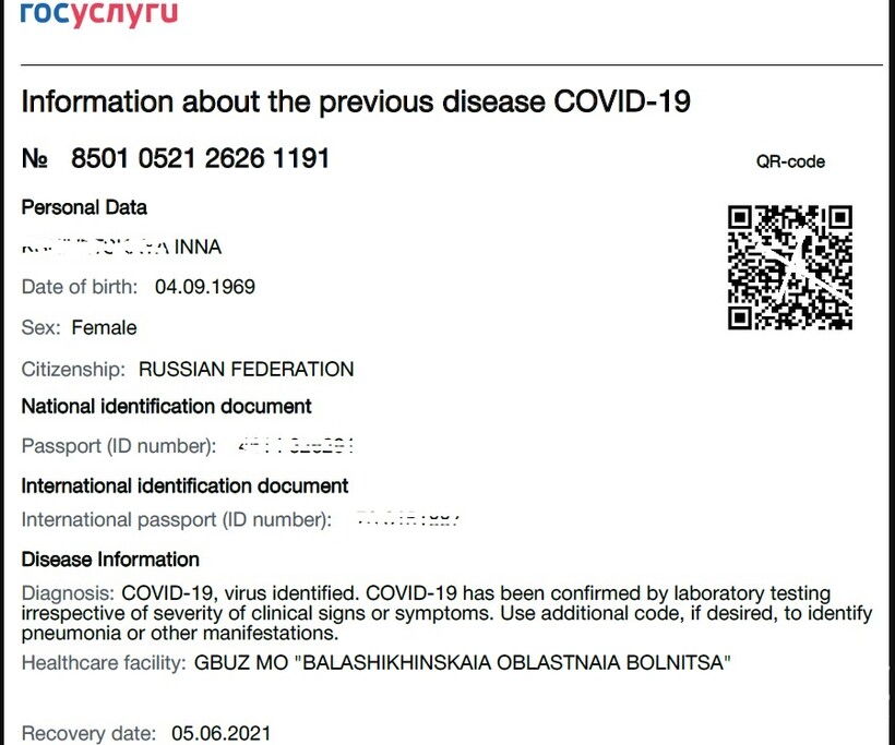Документ о перенесенной болезни COVID-19 должен соответствовать следующим критериям:
