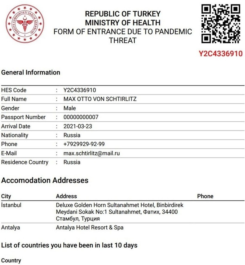 ВАЖНО. За 72 часа до въезда в Турцию россияне обязаны заполнить специальную форму о состоянии здоровья и получить индивидуальный HES-код.